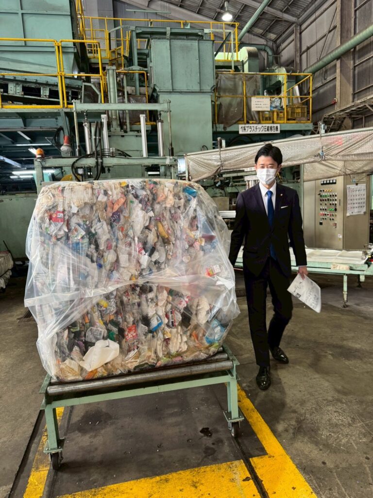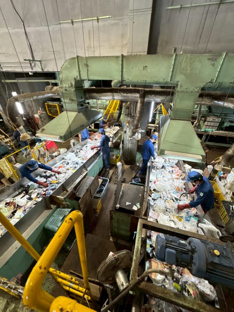 プラ容器包装、ペットボトルの選別・圧縮を担う市内リサイクルの中核施設
