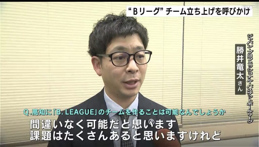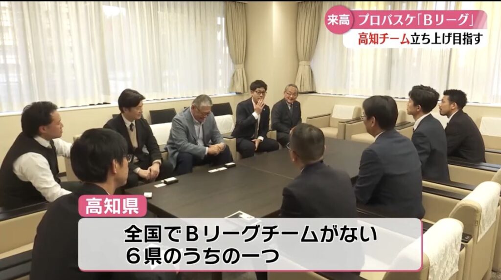 B.LEAGUEから、堀井B3理事長、勝井執行役員、小林様(高知県担当)にご来高いただき、高知でのB.LEAGUEチーム設立に向けた機運醸成に向けた勉強会が開催され、私も参加させていただきました。