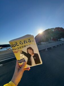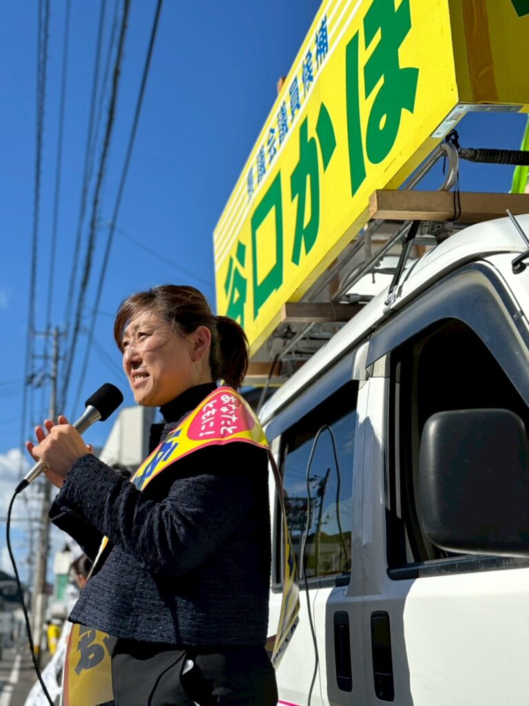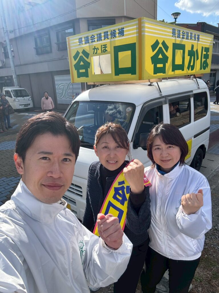 市議会議員として培ってきたこれまでの経験、そして多くの仲間とのつながり。地域の声を真正面から受け止め、国・県・市をつなぎ、政策として形にしていく。その役割を担えるのが、谷口かほ候補です。44歳、若い力。そして、女性ならではの視点も活かしながら、土佐清水を変える。土佐清水の未来を前に進めるために、一生懸命に戦っています。厳しい選挙戦が続いています。どうか谷口かほ候補への皆さまのご支援・ご協力を、心よりお願い申し上げます。