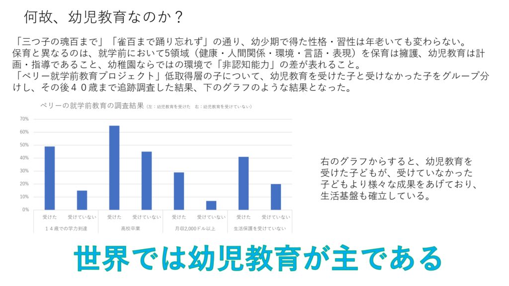 ・教育と保育の違い: 単なる「預かり(福祉)」ではなく、就学前の「教育」としての質の維持が問われている