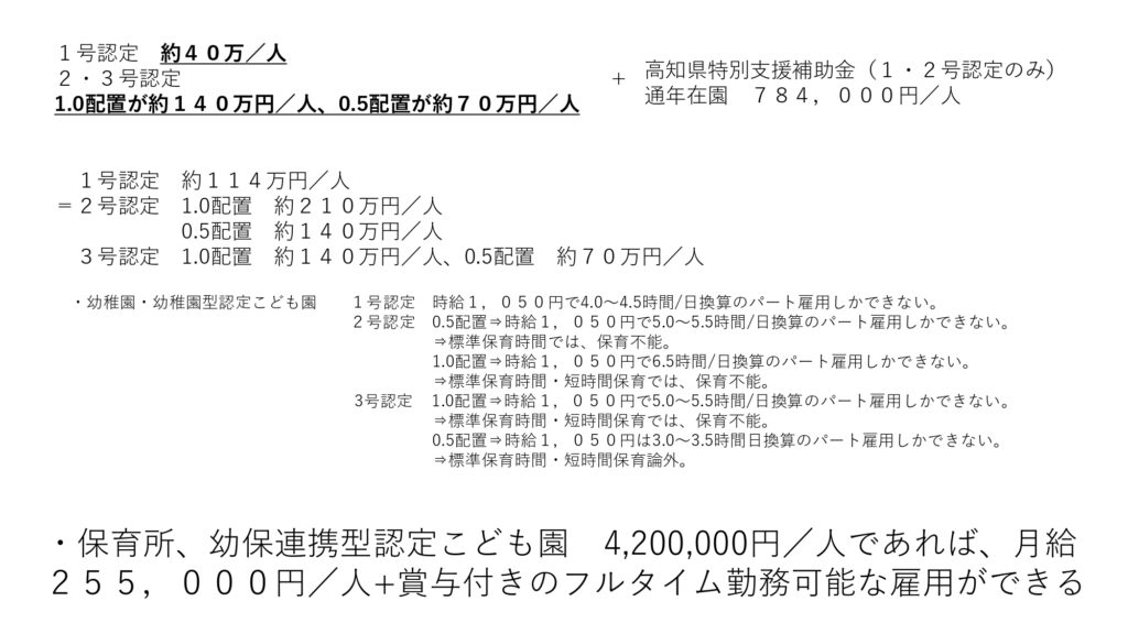 ・補助金のあり方: 高校などに行われているような「固定費」への補助が、より少子化の波を先に受けている幼稚園には不足しており、自由度の高い財源が必要