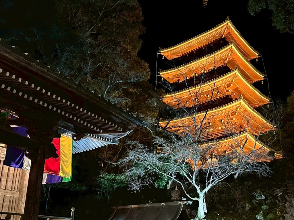 続いて訪れたのは、ライトアップされた竹林寺。昼間とは全く異なる、幻想的で静かな空気に包まれた境内はとても印象的でした。歴史ある寺院が夜の光に照らされる姿は、高知の文化と歴史の魅力を強く感じさせてくれました![]()