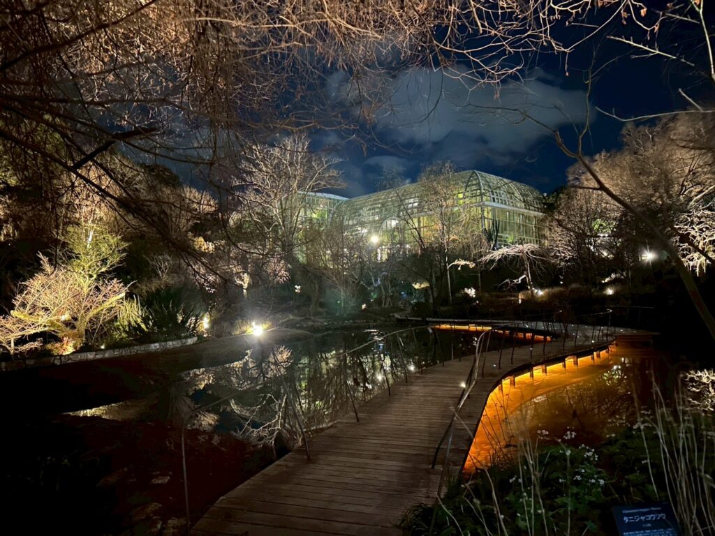 そして最後は高知県立牧野植物園 の夜の植物園へ。ライトアップされた園内を散策すると、昼間とは違った植物の表情や雰囲気を楽しむことができ、夜ならではの自然の魅力を体験することができました![]()