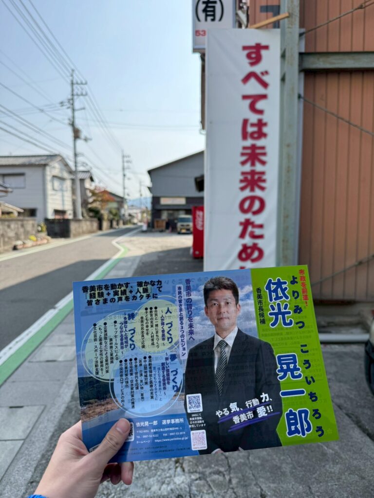 香美市の未来をさらに前へ進めるために、どうか皆さまの大切な一票を、依光晃一郎候補へ託していただきますよう、心よりお願い申し上げます![]()