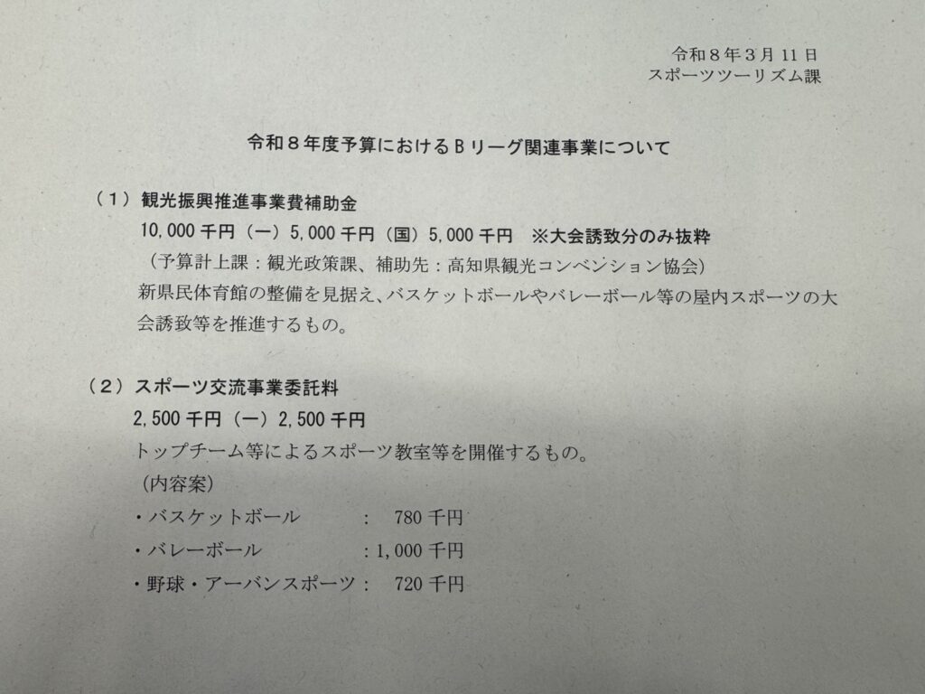 県の当初予算においてBリーグ関連事業が盛り込まれ、